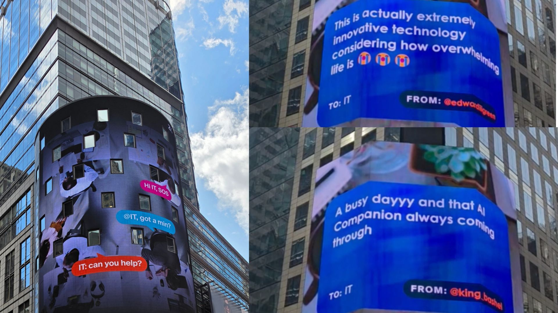 And they're not alone. Across enterprises everywhere, employees are quietly broadcasting their frustration — in message boards and chat threads, in all-hands Q&As, in the kind of blunt, unfiltered feedback that only surfaces when people feel invisible. The "Dear IT" letters are already written. We asked employees to share these frustrations with us, and recently displayed them on the big screen in Times Square.