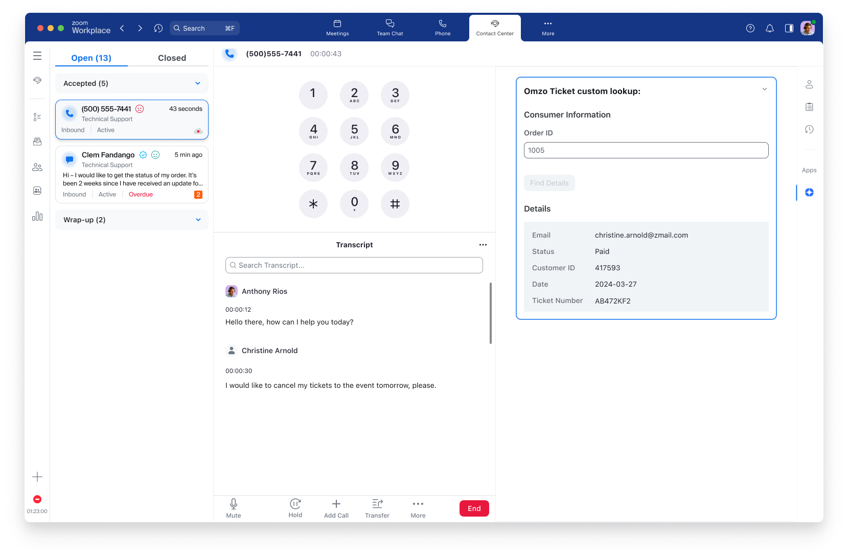 The all-in-one agent desktop in Zoom Contact Center gives quick and easy access to customer data