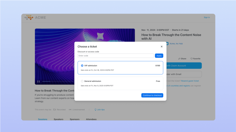 Pay only for the people who show up Ideal for annual conferences, one-time launches, or special corporate events that require full platform capabilities without ongoing subscription commitments.
