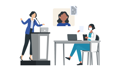 - Conferencias de prensa para concientización: los funcionarios de salud pública pueden implementar Zoom Webinars de manera estratégica para comunicarse rápidamente con miles de usuarios y tratar temas urgentes, como la concientización y las actualizaciones de vacunación, las pruebas e información de la COVID-19 y más. También pueden responder preguntas del público en tiempo real a través de la característica de preguntas y respuestas de los seminarios web o transmitir la sesión en directo en otras plataformas para concientizar.