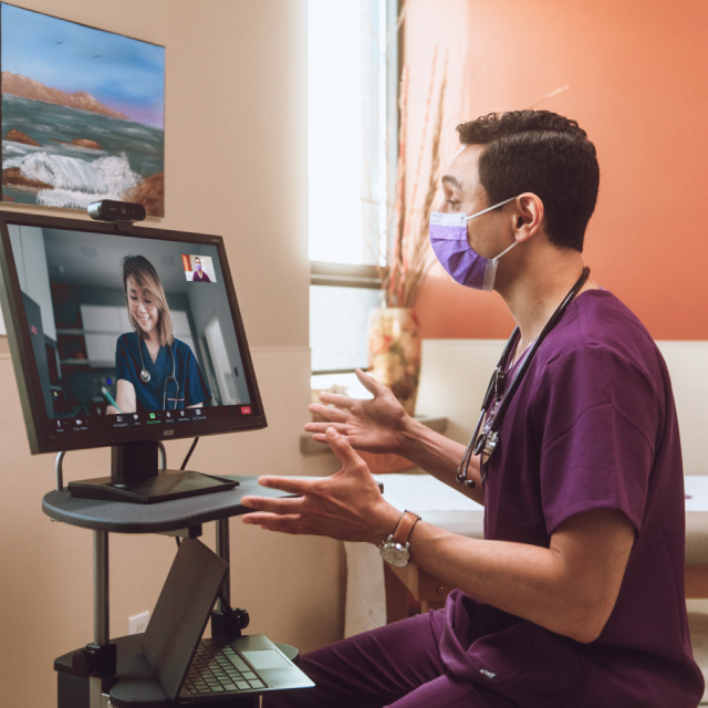 Los pacientes que no necesitan trasladarse a la clínica para recibir atención de seguimiento pueden conectarse con su médico desde casa usando cualquier dispositivo conectado a Internet, como un teléfono, una tableta o un equipo portátil.