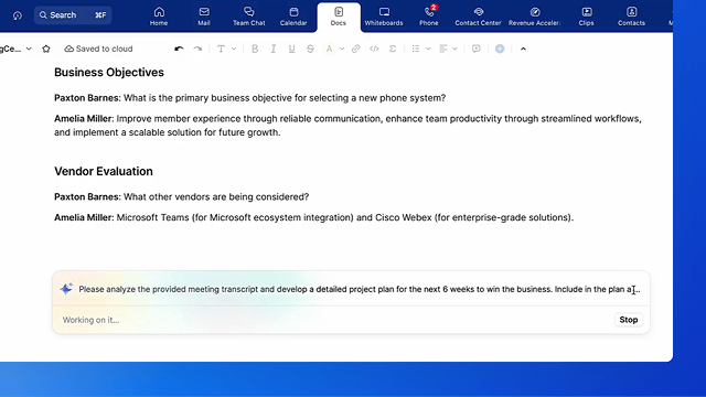 Los documentos antiguos están anclados en el pasado. Zoom Docs utiliza IA para transformar las conversaciones en documentos, wikis, tablas y formularios que pueden compartirse, de manera que su equipo puede colaborar mejor antes, durante y después de cada reunión.