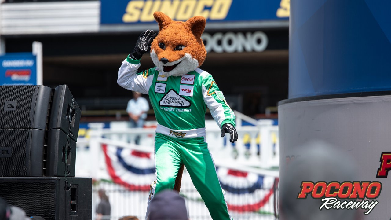 A striking professional meeting background featuring a businessman in a green suit standing alongside a friendly fox mascot, set in a corporate environment with warm, inviting lighting. The polished composition creates a professional yet approachable atmosphere, perfect for virtual presentations or team gatherings. Suitable for corporate event and racing enthusiasts.