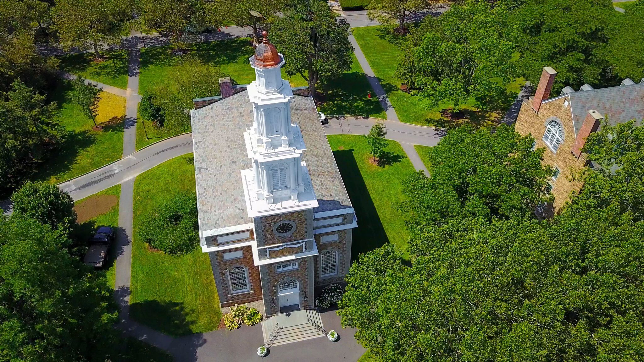 A historic Zoom background showcasing a picturesque countryside church surrounded by lush trees along a tranquil forest road. The soft, gentle lighting bathes the scene in a peaceful ambiance, creating a serene natural setting for your meetings. Suitable for nature and tranquility enthusiasts.