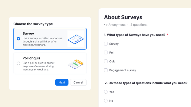 投票やアンケートを通じて貴重なインサイトを収集し、顧客満足度をモニタリングします。投票やアンケートを使用してミーティングの前にフィードバックを収集し、アジェンダを組み立てたり、チームの意見を集めてプロジェクトの進行を強化したりしましょう。