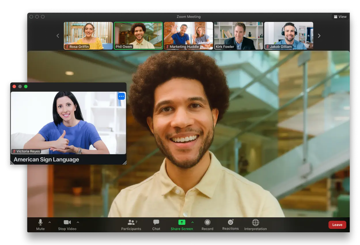 원격 학습은 무수한 이점과 편리함을 제공하지만 시각, 청각 및 기타 장애가 있는 이들에게는 어려움을 초래할 수도 있습니다. 이러한 장벽을 최소화하기 위해 학생, 교육자, 관리자 간의 연결을 간소화하는 몇 가지 포괄적인 도구를 사용하여 Zoom 플랫폼을 설계했습니다. 접근성을 위한 당사의 노력을 이어가는 최신 기능인 Zoom Meetings 및 Zoom Webinars용 수어 통역 보기를 발표하게 되어 기쁩니다.