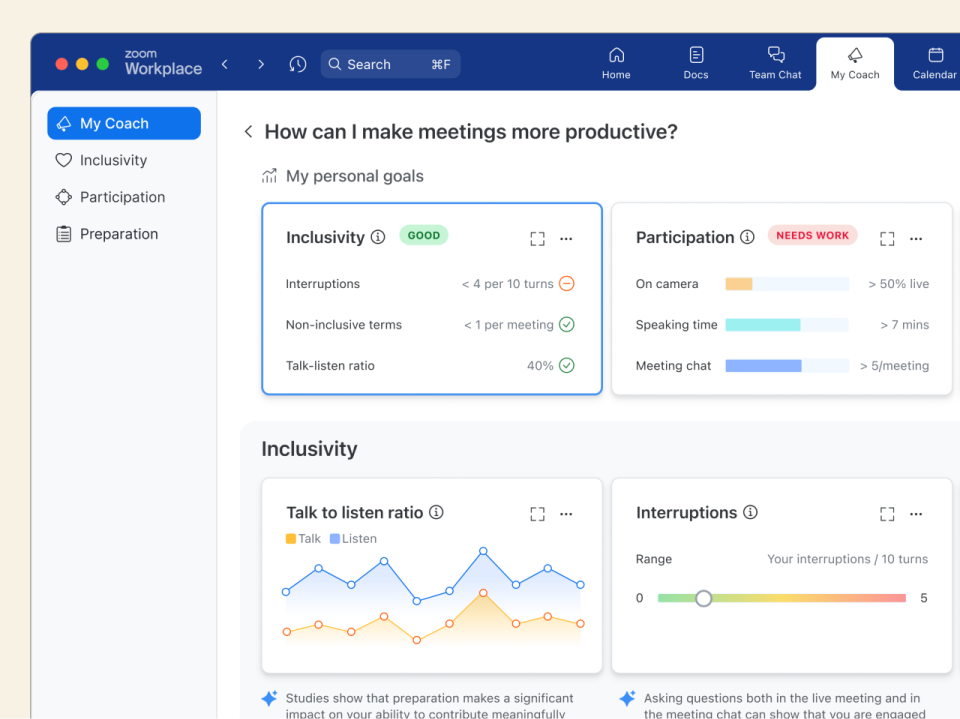 Met Zoom's Custom AI Companion kun je de gegevens en apps van je bedrijf veilig verbinden via AI Studio. Het resultaat: AI die je taal spreekt, je workflows begrijpt en je teams helpt sneller te handelen.