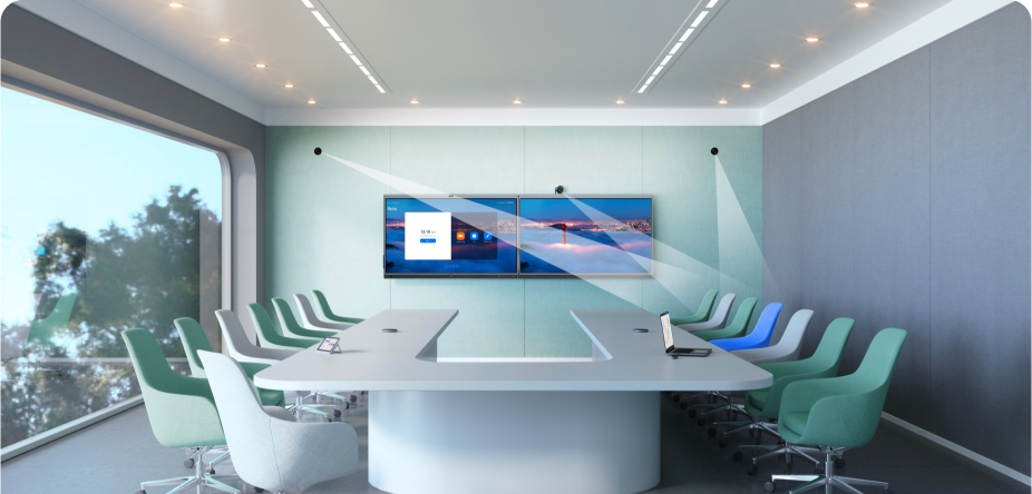 Vergaderruimten die het gemakkelijk maken om videovergaderingen uit te voeren of eraan deel te nemen met een enkele druk op de knop