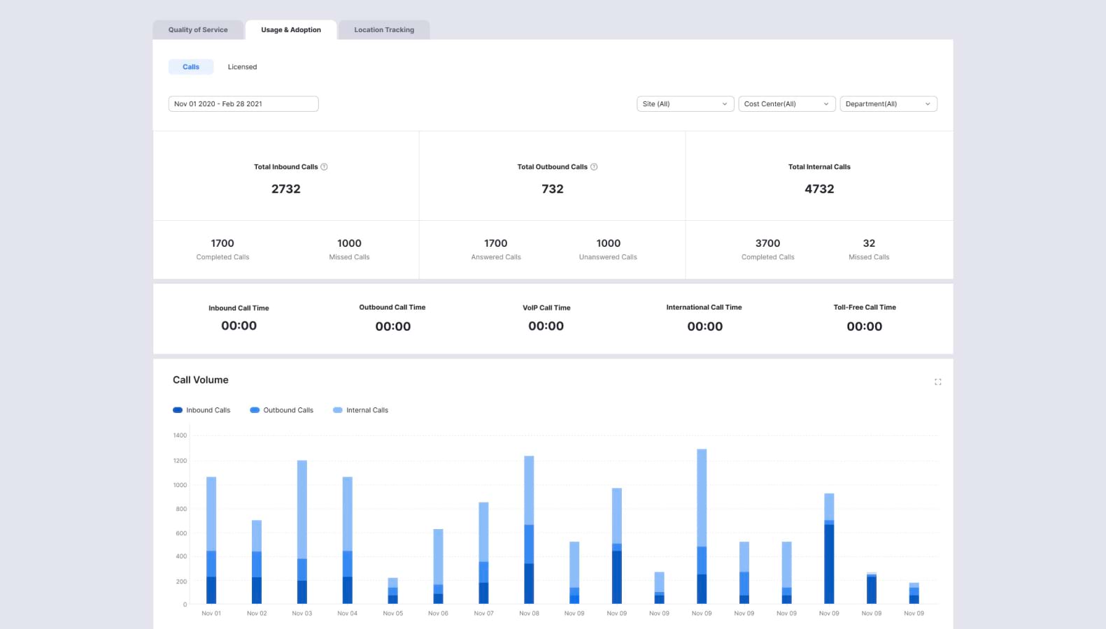 Uzyskaj kluczowe wskaźniki wykorzystania platformy Zoom Phone, w tym połączenia przychodzące i wychodzące, połączenia wykonane, odebrane i nieodebrane.