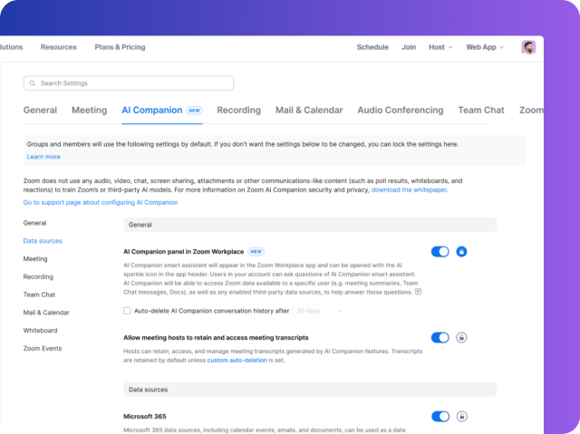 В этом информационном документе описаны функции безопасности и конфиденциальности Zoom AI Companion, доступные на дату публикации, и не затрагиваются другие продукты или услуги ИИ, предлагаемые Zoom. Мы постоянно стремимся к повышению продуктивности и при этом по-прежнему делаем упор на безопасность и конфиденциальность наших продуктов, поэтому описанные в этом документе функции могут совершенствоваться. В данном документе описаны функции AI Companion для Zoom Workplace. Zoom Contact Center и другие продукты Zoom на данный момент не включены в этот обзор.