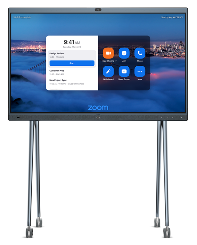 65/86-tums pekskärm för Zoom Rooms, med en 4K-kamera, 16 MEMS strålformande mikrofoner och sex högtalare.