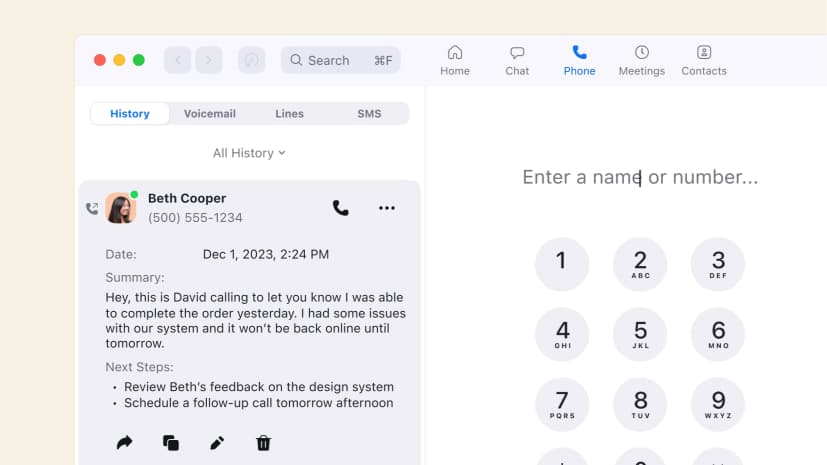 Zoom Phone är en molnbaserad VoIP-telefontjänst för modern kommunikation med innovativa funktioner som AI-drivna samtalssammanfattningar och nästa steg, avancerad samtalsdirigering och integrering med chatt och möten.
