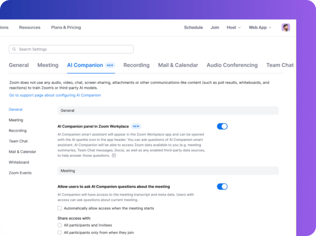 Bu teknik inceleme, Zoom AI Companion'ın yayın tarihi itibarıyla sahip olduğu güvenlik ve gizlilik özelliklerini açıklar ve Zoom tarafından sunulan diğer AI ürünlerini veya hizmetlerini açıklamaz. Üretkenliği destekleme taahhüdümüz devam ederken güvenlik ve gizlilikle ilgili hususları ürünlerimizin merkezinde tutuyoruz ancak burada açıklanan özellikler değişebilir. Bu makale, Zoom Workplace için AI Companion Özelliklerini tartışmaktadır. Zoom Contact Center ve diğer Zoom ürünleri şu anda bu teknik incelemede yer almamaktadır.