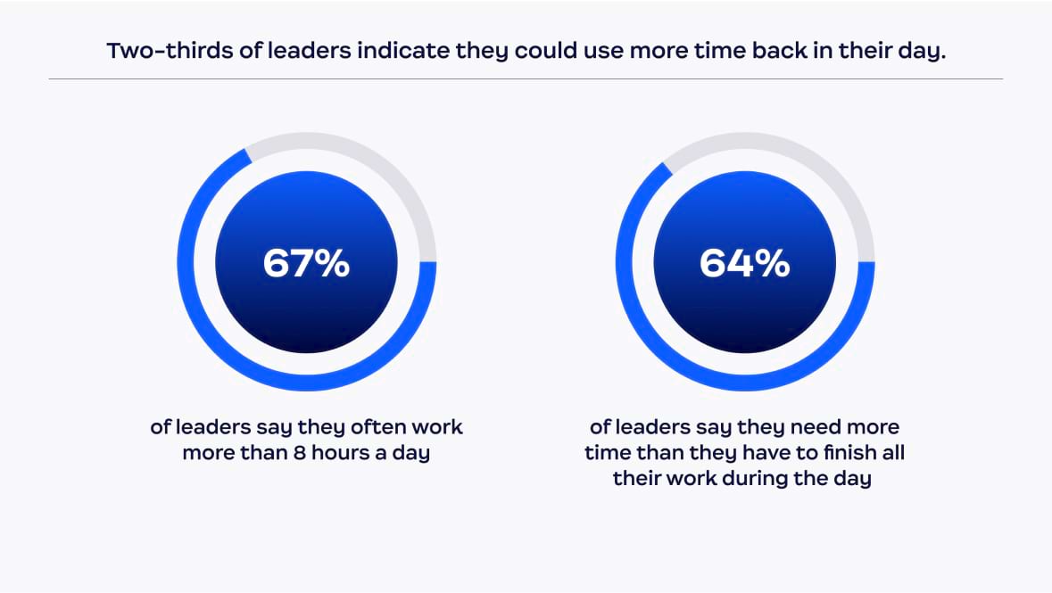Liderlerin %64'ü gün içinde tüm işlerini bitirmek için mevcut mesaiden fazla zamana ihtiyaç duyduğunu söylüyor