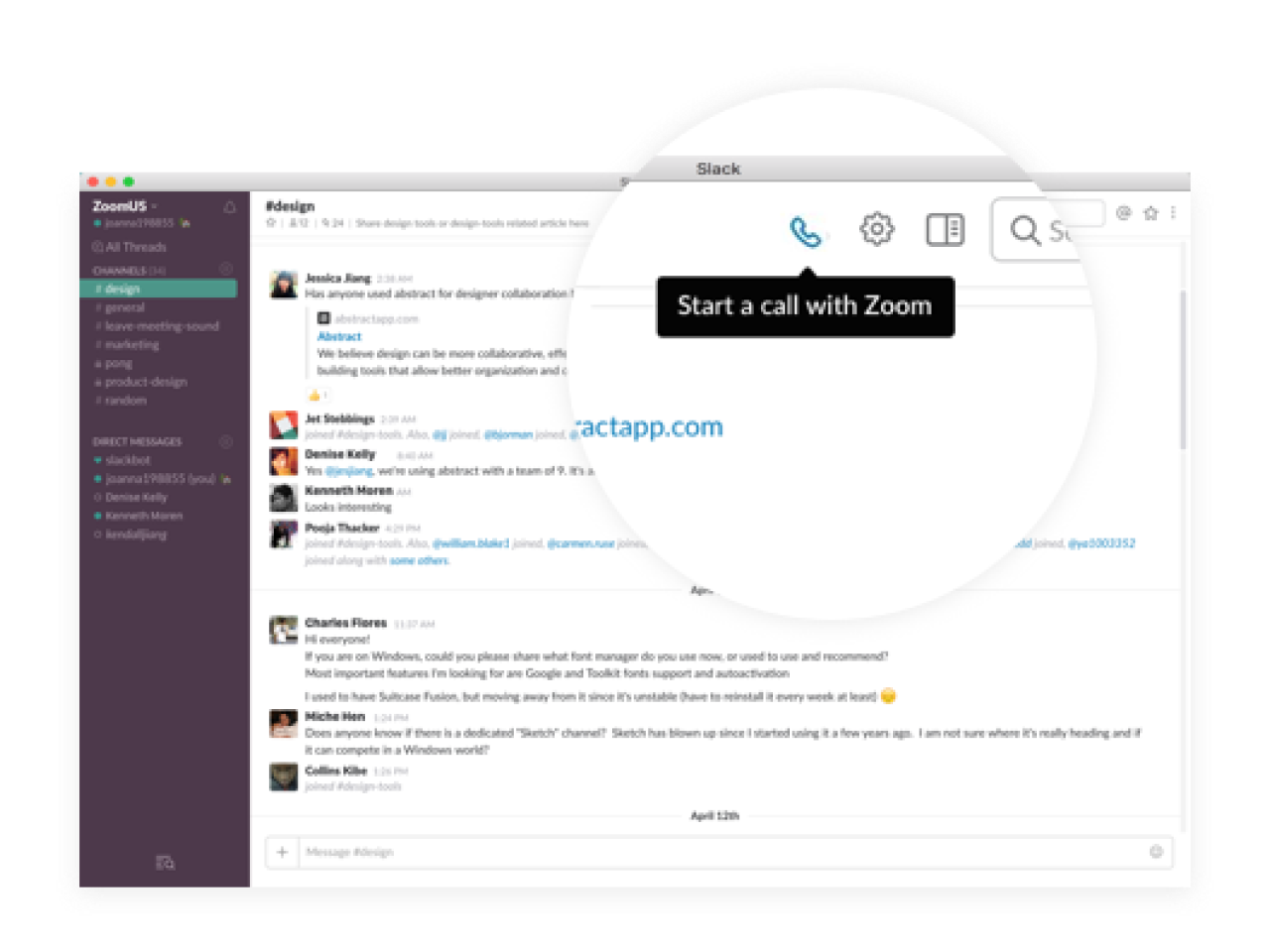Mỗi khi nhấp vào biểu tượng điện thoại trong Slack, bạn sẽ khởi chạy một cuộc họp Zoom