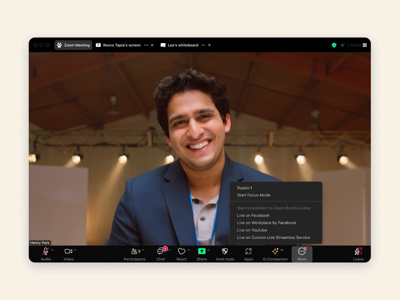 您知道您可以將Zoom Meetings 直播到 Facebook、Twitch、Instagram 和 YouTube 嗎?您只需要 Zoom Workplace 專業版授權即可啟用直播。您也可以使用自訂直播服務來擴大受眾覆蓋範圍。Zoom Webinars也支援直播。