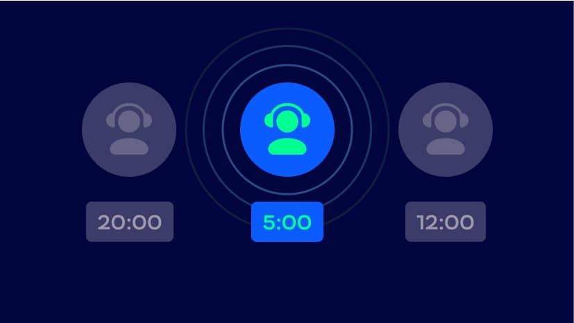 在同一時間提醒所有專員。此方法允許第一位回應通話的專員接洽客戶,大幅縮短等候時間。