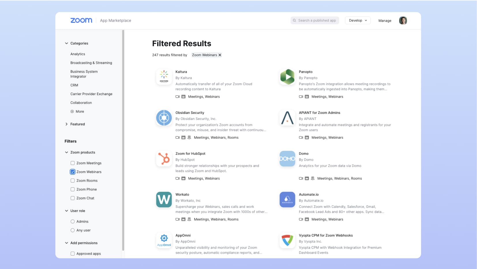 加入我們的產品專家,參加 Zoom Webinars 的現場示範!從主持人和觀眾的角度查看平台,實時提出問題,並向專業人士學習技巧。沒有銷售壓力,只有實用的專業知識。